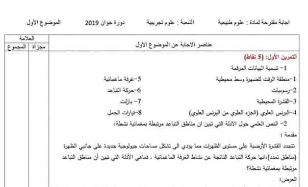 تصحيح موضوع علوم الطبيعة والحياة بكالوريا 2019 شعبة علوم تجريبية