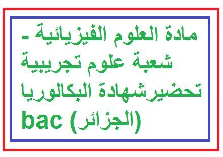 مادة العلوم الفيزيائية شعبة علوم تجريبية تحضيرشهادة البكالوريا Bac الجزائر توظيف و تعليم