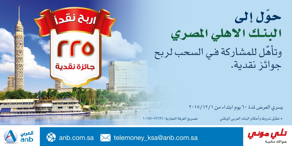 البنك العربي الوطني On Twitter حول من تلي موني الى البنك الاهلي المصري في مصر وتأهل لدخول السحب لربح جوائز نقدية Https T Co Cjbfs5dekr Https T Co Qovfgbuwds